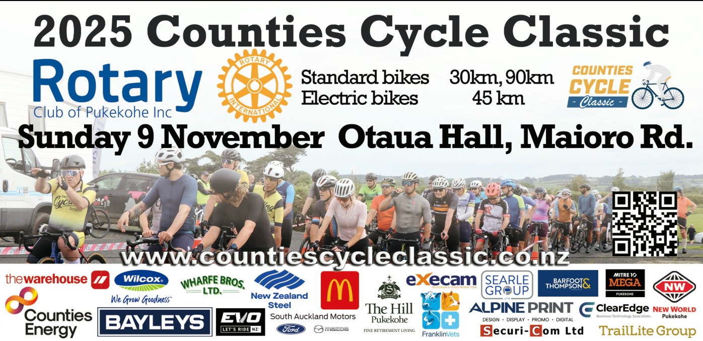 This year’s Counties Cycle Classic will continue to run through picturesque Franklin countryside for the third time in a row. Home base is at the Otaua Hall on Maioro Road, South West of Pukekohe. Home base is at the Otaua Hall on Maioro Road, South West of Pukekohe.